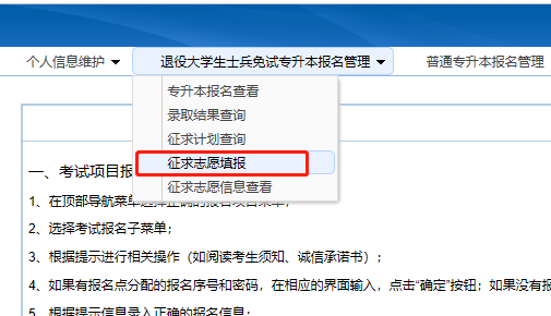 2022年浙江专升本退役大学生士兵免试征集志愿填报流程